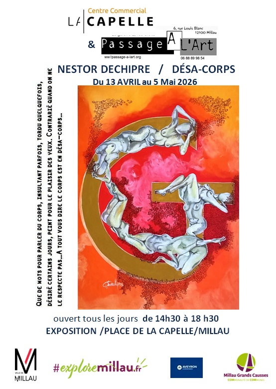 • Exposition collective et solo, le portait est le corps et mis a l’honneur. Dans la belle ville de Millau.